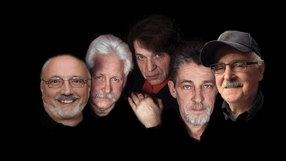 Das zweite rechte Foto zeigt die letzte und dritte Phase – von links nach rechts: Erwin Kolibabka, Klaus Puchmüller, Nick Eckhardt, Bernd Stiefelhagen und Wolfgang Jülke. Diese Besetzung bildete die abschließende Formation der Atomics-Revival-Band – just fine oldies!.